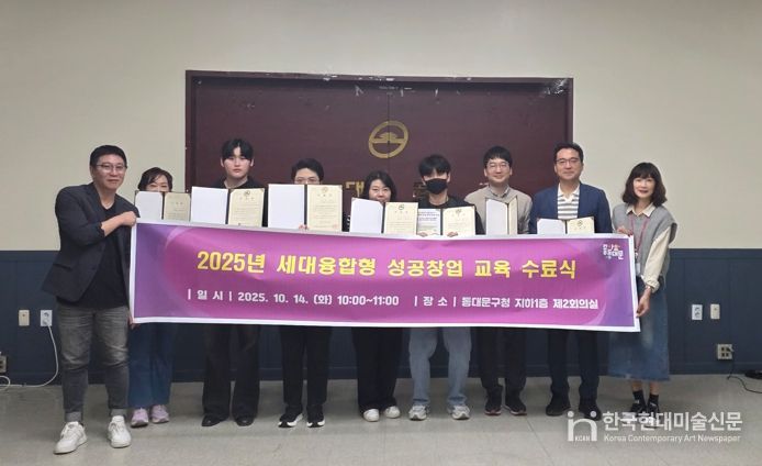 한국현대미술신문 배건 기자 | 서울 동대문구는 지난 14일 구청 제2회의실에서 ‘청년과 중‧장년, 우리 함께해요!’를 주제로 세대융합형 창업 교육 수료식을 개최했다.