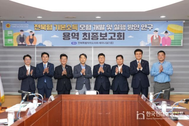 한국현대미술신문 기자 | 전북자치도의회 전북형 기본소득제도 연구회는 15일 전북자치도의회 세미나실에서 ‘전북형 기본소득 모형개발 및 실행방안 연구 용역' 최종보고회를 개최했다.