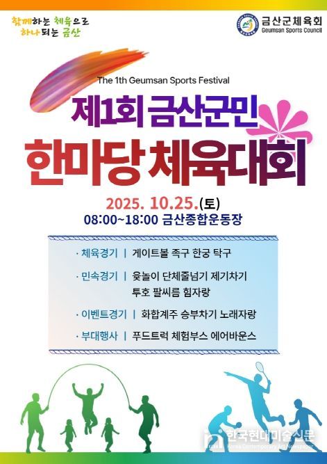 한국현대미술신문 신정은 기자 | 금산군은 오는 25일 금산군종합운동장에서 제1회 금산군민 한마당체육대회를 개최한다.
