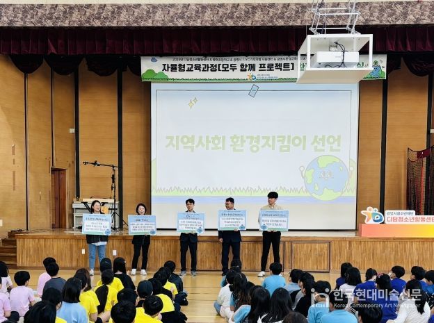 한국현대미술신문 배윤섭 기자 | (재)광명시청소년재단(이사장 박승원) 디딤청소년활동센터(센터장 안미선)는 충현초등학교(교장 김형식), 광명시 1.5℃기후의병 지원센터(탄소중립정책팀장 김현태), 광명시환경교육센터(센터장 김동현), 광명업사이클아트센터(센터장 강진숙), 광명YMCA(사무총장 윤재향)와 연계하여 10월 15일 ‘환경지킴이 선언식’을 진행했다.