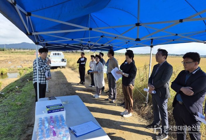 한국현대미술신문 신정은 기자 | 충남도 농업기술원은 16일 현대서산농장 벼 시험재배포장에서 벼 관련 산업체와 국가 연구·지도기관, 농업인 등 20여 명이 참석한 가운데 벼 신품종 ‘지키미’에 대한 현장 평가회를 개최했다.