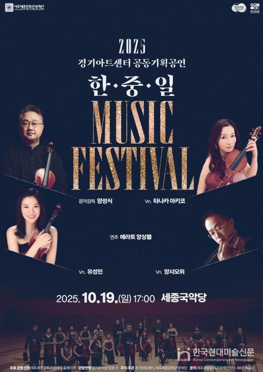 한국현대미술신문 배윤섭 기자 | 여주세종문화관광재단이 오는 10월 19일, 경기아트센터와 공동기획으로 ‘한·중·일 뮤직 페스티벌’을 세종국악당에서 선보인다.