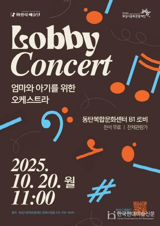 한국현대미술신문 배윤섭 기자 | 화성시문화관광재단 화성시 예술단이 오는 10월 20일 오전 11시, 동탄복합문화센터 B1 로비(노노카페 앞)에서 ‘엄마와 아기를 위한 오케스트라’를 주제로 로비콘서트를 개최한다.