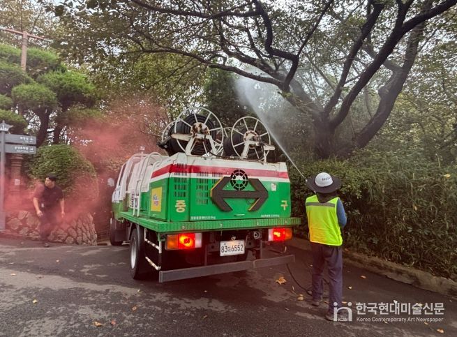 한국현대미술신문 정소영 기자 | 부산 중구는 10월 16일 용두산공원에서 다중이용시설의 화재·붕괴라는 복합 재난 상황을 구성하여 실전과 같은 대응훈련을 실시했다.