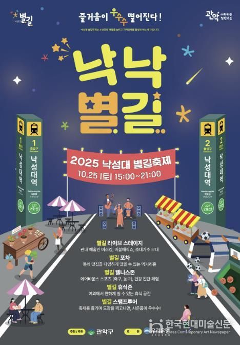 한국현대미술신문 배건 기자 | 관악구가 오는 25일 지하철 2호선 낙성대역 1번 출구부터 4번 출구까지 이어지는 봉천로 일대에서 ‘낙성대 별길 축제-낙낙별길’을 개최한다.