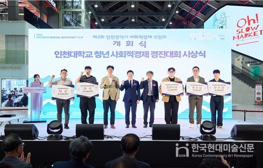 한국현대미술신문 박재남 기자 | 인천광역시는 지난 9월 26일 열린 ‘제2회 인천사회적경제박람회 기념식’에서 인천대학교 청년 (예비)창업대학생 5개 팀을 대상으로 창업경진대회 우수팀 시상식을 진행했다고 밝혔다.