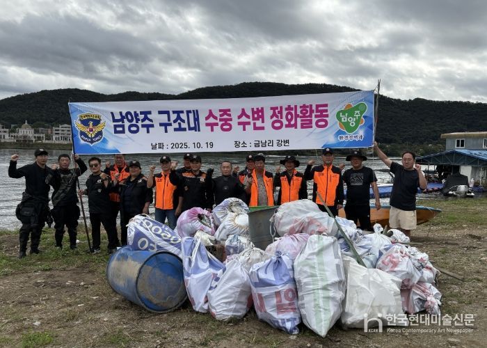 한국현대미술신문 배윤섭 기자 | 남양주시는 19일 금남리 어촌계 선착장 일원에서 사단법인 한국해양구조협회 남양주구조대 주관으로 ‘수중·수변 정화활동’을 진행했다고 밝혔다.