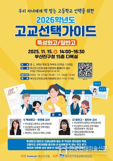 한국현대미술신문 정소영 기자 | 부산 부산진구는 11월 15일 토요일 오후 2시 구청 15층 다복실에서 ‘2026학년도 고교선택가이드 현장 설명회’를 개최한다고 밝혔다.