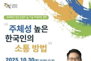 ‘주체성이 높은 한국인의 소통 방법’에 대한 특강은 오는 30일 오후 2시 관악구청 대강당에서 진행될 예정이다. 정신 건강에 관심 있는 주민이라면 누구나 참여할 수 있고, 10월 24일까지 관악구청 홈페이지(참여/예약▷참여신청▷강좌/행사예약)에서 신청하면 된다.