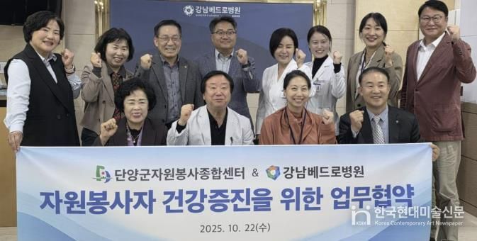 한국현대미술신문 신정은 기자 | 충북 단양군자원봉사종합센터는 지난 22일 강남베드로병원과 자원봉사자의 건강복지 증진을 위한 업무협약을 체결했다고 밝혔다.
