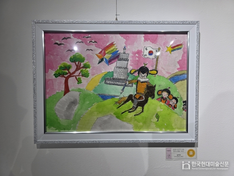 대상 수상자 김지인 학생은 “그림 속에서 강감찬 장군이 나라를 지키기 위해 싸우는 모습을 그리고 싶었어요. 용감하고 지혜로운 장군의 마음을 색깔로 표현했는데, 이렇게 상을 받아 정말 기쁘고 신기해요”라며 환하게 웃었다.
