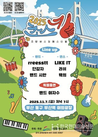 한국현대미술신문 정소영 기자 | 부산 동구는 오는 11월 7일 오후 7시부터 9시까지, 부산역 야외광장(부산 동구 중앙대로 210)에서 ‘2025년 초량 버스킹 페스티벌’을 개최한다.