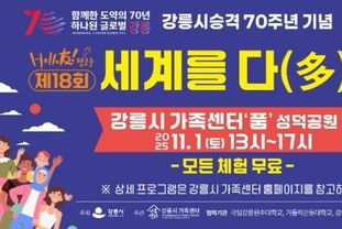 한국현대미술신문 원진 기자 | 강릉시가 주최하고 강릉시가족센터가 주관하는 '제18회 세계를 다(多)담다 페스티벌'이 오는 11월 1일 오후 1시부터 강릉시가족센터와 성덕공원 일원에서 개최된다.