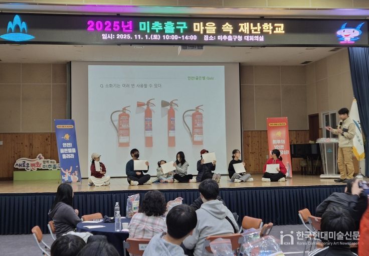 한국현대미술신문 박재남 기자 | 인천 미추홀구종합자원봉사센터(센터장 유중형)는 지난 1일 구청 대회의실에서 관내 아동, 청소년 등 다양한 연령층의 자원봉사자 120여 명이 참석한 가운데 마을 속 재난학교 ‘배우고(Go)! 체험하고(Go)! 우리 마을, 안전! 골든벨’을 진행했다.