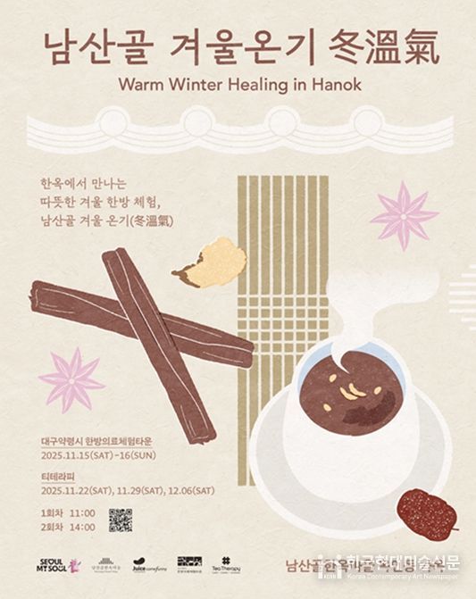 한국현대미술신문 배건 기자 | 서울시 전통문화공간 남산골한옥마을은 11월 15일부터 12월 6일까지 겨울 한정 한방 체험 프로그램 ‘2025 남산골 겨울나기 '겨울 온기 동온기(冬溫氣)'’를 개최한다.