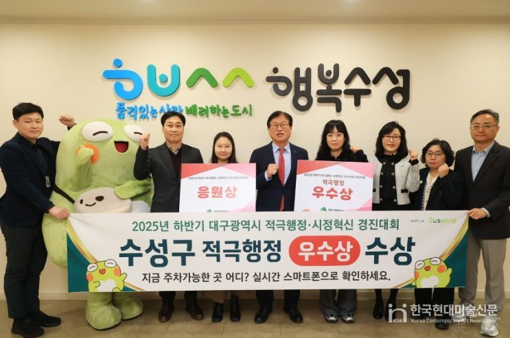 한국현대미술신문 정소영 기자 | 대구 수성구는 지역 내 주차 부족 문제 해결을 위한 창의적이고 적극적인 행정을 펼친 결과, 지난 30일 대구광역시가 주최한 ‘2025년 하반기 대구광역시 적극행정·시정혁신 경진대회’에서 우수상⸱응원상을 수상했다고 밝혔다.