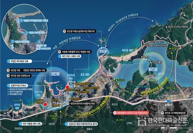 고성 대진항은 “경제도약형(1유형)”으로, 인근 화진포 리조트 개발과 연계해 수산물 가공·유통시설과 관광 인프라를 구축, 민자사업과 어촌이 상생하는 강원 북부권의 해양산업·관광 복합경제 거점으로 육성할 예정이다.
