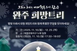 이번 대형 희망 트리는 오는 11월 10일부터 12월 25일까지 46일간 점등되며, 연말연시 동안 완주군민과 방문객들에게 따뜻한 휴식과 포토존의 즐거움을 선사할 예정이다.