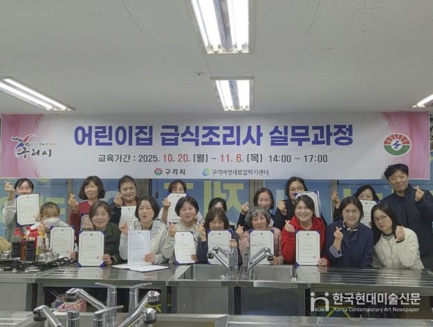 한국현대미술신문 배윤섭 기자 | 구리시는 11월 6일 ‘어린이집 급식 조리사 실무과정’ 직업교육훈련 수료식을 개최하고 16명의 수료생을 배출했다고 밝혔다.