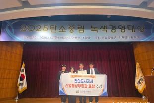 한국현대미술신문 신정은 기자 | 천안도시공사는 7일 2025 탄소중립 녹색경영 정부포상에서 산업통상부장관표창을 수상했다고 밝혔다.