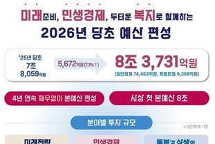 본예산은 특별회계 포함 처음으로 8조 원을 넘었으며, 이는 지방세와 보통교부세의 증가뿐만 아니라 국비 확보 노력의 결과로, ① 미래전략산업 육성 ② 민생경제 회복 ③ 돌봄과 상생의 복지 실현, 3대 분야에 집중 투입된다.