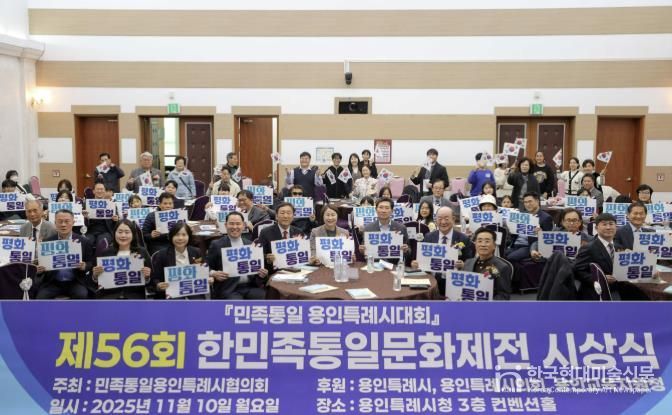 한국현대미술신문 배윤섭 기자 | 용인특례시는 10일 시청 컨벤션홀에서 민족통일 용인특례시협의회 주관으로 ‘민족통일 용인특례시대회와 제56회 한민족통일문화제전 시상식’이 열렸다고 밝혔다.