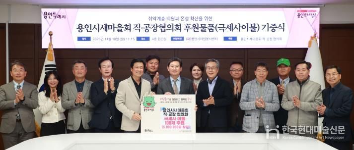 이상일 시장은 “용인특례시의 인구가 증가하면서 기초생활수급자 등 돌봐야 할 어려운 이웃들도 늘어나고 있는데 새마을 직ㆍ공장협의회가 지역 사회 소외계층을 위한 지원에 앞장서 주셔서 감사하다”며 “시장으로서 어려운 환경에 있는 시민들을 보살피고 지원하는 데 더욱 신경쓰겠다”고 했다.