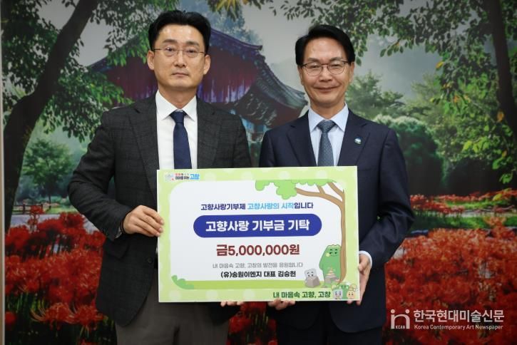 한국현대미술신문 기자 | 고창군 고향사랑기부제로 ㈜예담엔지니어링 김장관 대표가 1004만원을, (유)송원이엔지 김승현 대표가 500만원을 기부하며 지역발전에 힘을 보탰다.
