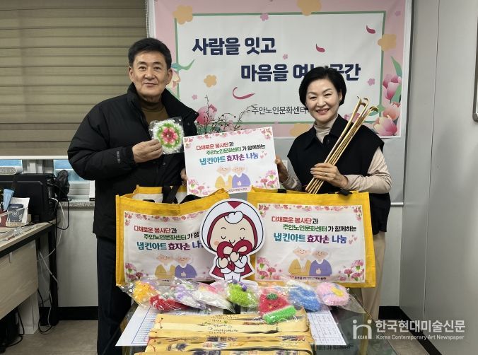 한국현대미술신문 박재남 기자 | 인천 미추홀구종합자원봉사센터(센터장 유중형)는 지난 10일 주안노인문화센터를 방문해 다채로운 봉사단이 만든 ‘냅킨아트 효자손’ 100여 개를 전달했다.