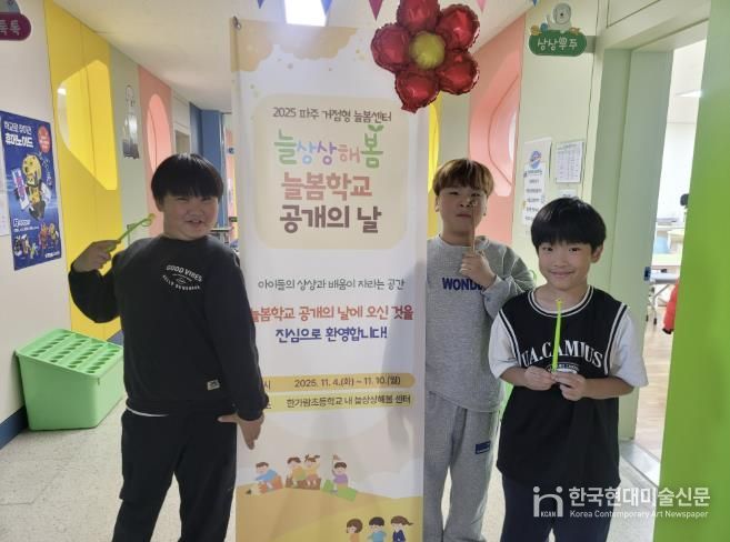 한국현대미술신문 배윤섭 기자 | 파주 한가람초 내에 위치한 늘상상해봄 거점센터에서는 2학기 늘봄학교 공개의 날을 운영했다. 2025년 11월 4일 화요일부터 11월 10일 월요일까지 일주일 동안 진행됐으며 거점센터 프로그램 수강생 학부모님들이 참관했다.