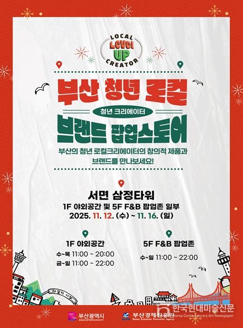 한국현대미술신문 정소영 기자 | 부산시와 부산경제진흥원은 오늘(12일)부터 16일까지 5일간 서면 삼정타워에서 '2025 부산 청년 로컬 브랜드 팝업스토어'를 개최한다고 밝혔다.