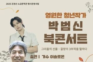 한국현대미술신문 신정은 기자 | (재)논산문화관광재단은 강경산 소금문학관 행사 운영 사업의 일환으로 영원한 청년작가 박범신 북콘서트 '그리움의 선율 – 갈망의 3부작을 말하다'를 2025년 11월 15일 13:00~15:00, 강경산 소금문학관에서 개최한다.