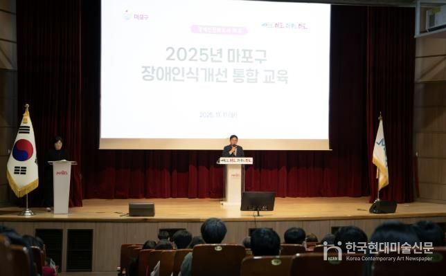 한국현대미술신문 배건 기자 | 마포구는 11월 11일 오후, 구청 대강당에서 마포구 소속 직원과 근로자 약 500여 명을 대상으로 장애인식개선 통합교육을 진행했다.