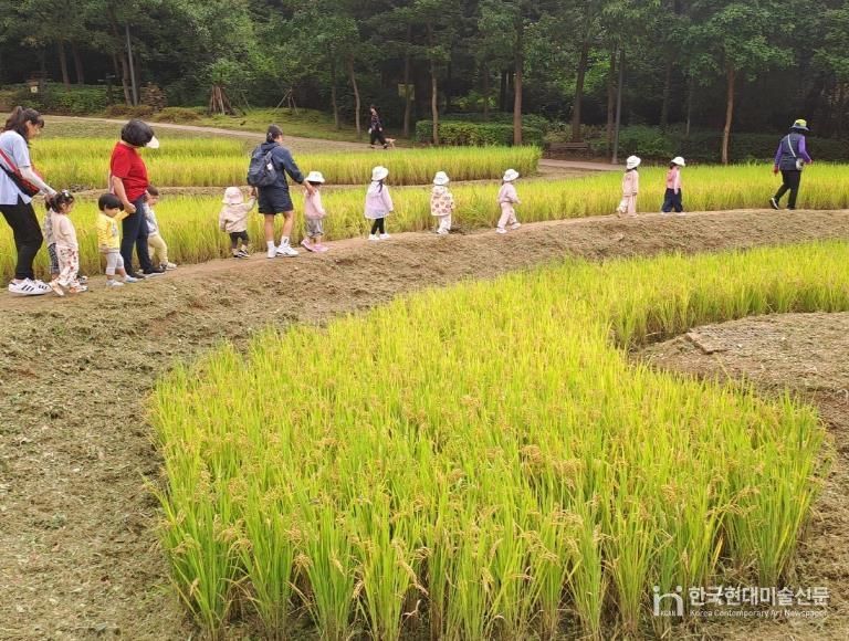 한국현대미술신문 배건 기자 | 서울 강동구는 일자산근린공원에 위치한 다랭이논(둔촌동 산119)에서 아이들과 함께 탈곡 및 추수하기 체험을 진행했다고 13일 밝혔다.