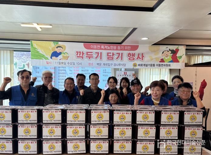 바르게살기운동 이동면위원회는 매년 김장 나눔, 환경정화활동, 취약계층 지원 등 다양한 봉사활동을 이어오며 지역사회에 나눔과 실천의 문화를 확산시키고 있다.