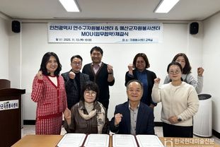 한국현대미술신문 박재남 기자 | 인천광역시 연수구자원봉사센터와 충청남도 예산군자원봉사센터는 13일 (예산군자원봉사센터)에서 지역간 자원봉사 활성화와 네트워크를 통해 지역사회 발전을 위한 업무협약(MOU)을 체결했다고 밝혔다.