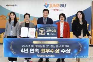 중구보건소는 2022년 우수상, 2023년·2024년 최우수상에 이어 4년 연속 수상의 영예를 안으며, 심뇌혈관질환 예방·관리 분야의 선도기관임을 다시 한번 입증했다.