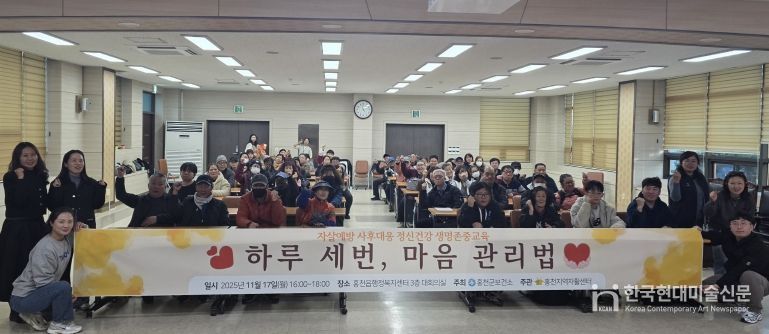 한국현대미술신문 원진 기자 | 홍천군 정신건강복지센터는 11월 17일 홍천읍행정복지센터에서 홍천군지역자활센터 이용자와 종사자를 대상으로 ‘하루 세 번 마음 관리법’이라는 주제로 정신건강교육을 실시했다.