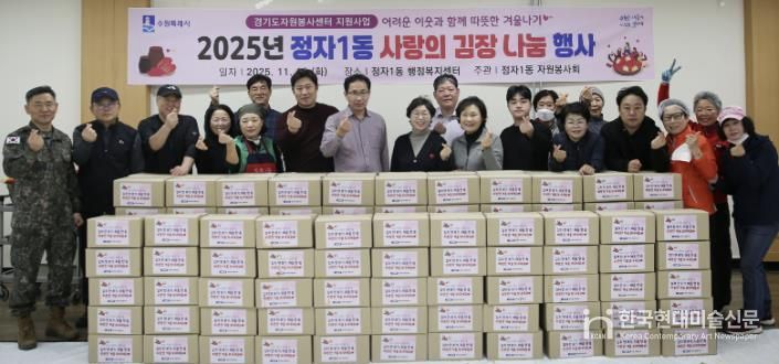한국현대미술신문 배윤섭 기자 | 수원시 장안구 정자1동은 지난 18일 지역 내 어려운 이웃들을 돕기 위한 ‘2025년 사랑의 김장 나눔’ 행사를 진행했다.
