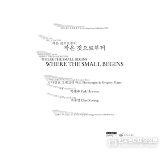 한국현대미술신문 배윤섭 기자 | 경기문화재단 경기도미술관은 11월 19일부터 2026년 2월 22일까지 2025 경기작가집중조명 《작은 것으로부터》를 개최한다. 이번 전시는 경기도를 기반으로 활동하는 중견작가 김나영 & 그레고리 마스, 박혜수, 최수앙 3인(팀)의 작품세계를 집중 조명하는 기획전이다. 경기문화재단 예술본부 추진의 ‘경기 시각예술 집중조명’ 사업과 협력해 제작 지원 신작을 선보이는 이번 전시는 올해로 4회째를 맞이했다. 《작은 것으로부터》는 1990년대 조각적 기반 위에서 출발해 동시대의 사회적·제도적 맥락 안에서 조형 언어를 갱신하고 변주해 온 작가들의 작품세계를 소개한다.