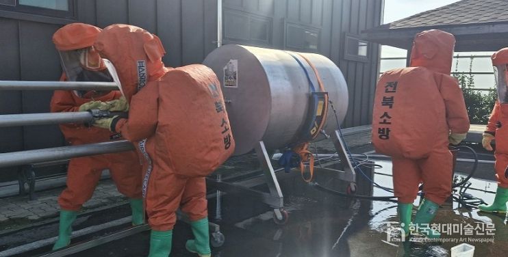 한국현대미술신문 기자 | 전북특별자치도소방본부는 지난 19일 119특수대응단 화학구조대 청사에서 유해화학물질 누출 사고 대응 역량 강화를 위해 특수대응단과 소방서 간 합동훈련을 실시했다.