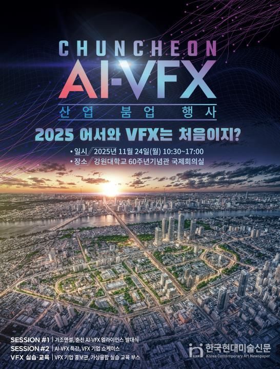 한국현대미술신문 원진 기자 | 춘천시는 2025년 11월 24일 강원대학교 60주년 기념관 국제 회의실에서 ‘춘천 AI-VFX 산업붐업행사 – 2025 어서와! VFX는 처음이지?’를 개최한다고 밝혔다.