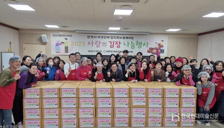 한국현대미술신문 배윤섭 기자 | 경기도 여성단체협의회 안성시지회은 지난 19일 안성농업기술센터 1층 조리실에서 ‘사랑의 김장 나눔’ 행사를 진행했다고 밝혔다. 이번 행사는 지역사회의 소외된 이웃들에게 따듯한 나눔의 손길을 전하기 위한 뜻깊은 자리였다.