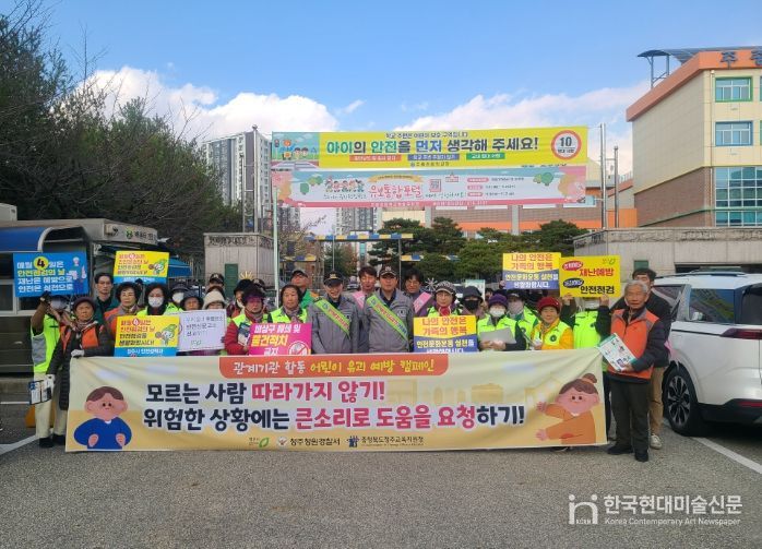 한국현대미술신문 신정은 기자 | 청주시는 20일 청원구 주중초등학교 일원에서 어린이 등하굣길 안전 확보를 위한 ‘어린이 약취·유인 예방 캠페인’을 실시했다.