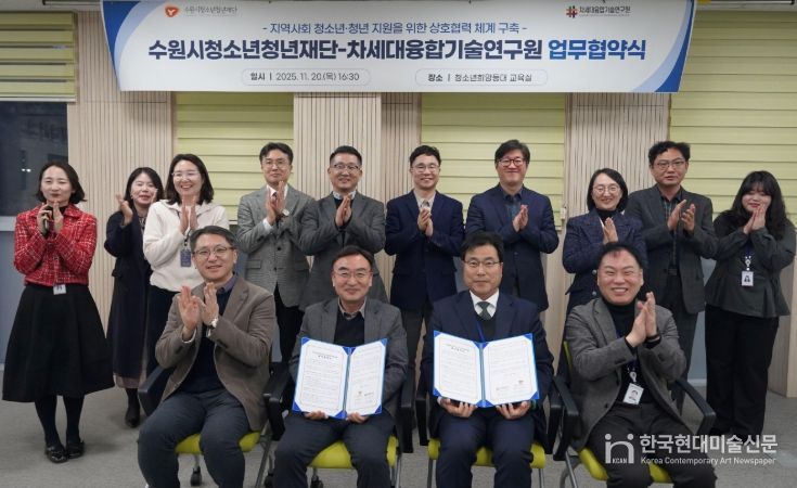 한국현대미술신문 배윤섭 기자 | 수원시청소년청년재단(이사장 최종진)과 차세대융합기술연구원(원장 김연상)은 11월 20일, 청소년·청년의 미래 역량 강화와 성장 지원을 위한 업무협약(MOU)을 체결했다.