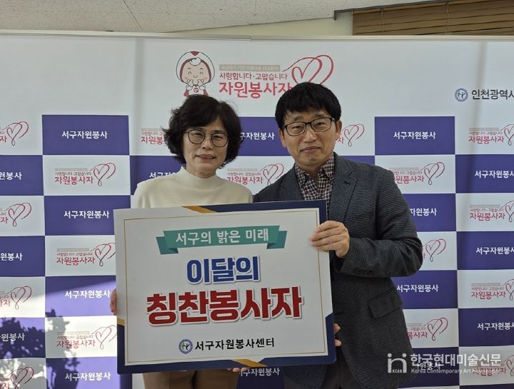 한국현대미술신문 박재남 기자 | 인천서구자원봉사센터는 지역사회 발전을 위해 여러 분야에서 다양한 봉사활동에 참여한 자원봉사자를 격려하고 자원봉사 문화를 확산하기 위한 “자원봉사 칭찬릴레이”를 매월 실시하고 있다.