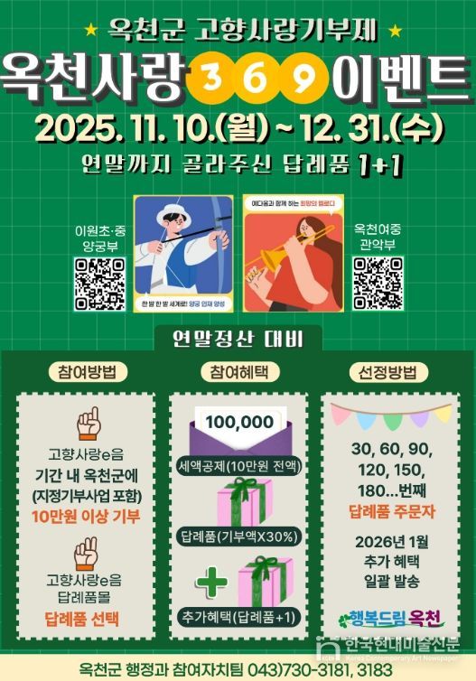 한국현대미술신문 신정은 기자 | 옥천군이 연말맞이 고향사랑기부제 활성화를 위해 특별 이벤트를 진행한다.