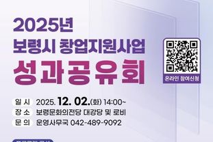 한국현대미술신문 신정은 기자 | 보령시는 12월 2일 오후 2시 보령문화의전당 대강당 및 로비에서 ‘2025년 창업지원사업 성과공유회’를 개최한다고 밝혔다.