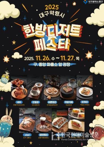 한국현대미술신문 정소영 기자 | 대구 중구는 오는 26일부터 27일까지 양일간 오전 11시부터 오후 3시까지 옛 중앙파출소 앞 광장에서 ‘대구약령시 한방디저트 페스타’를 개최한다고 밝혔다.