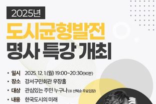 이번 특강은 12월 1일 오후 7시부터 8시 30분까지 강서구민회관(우장산로 66) 우장홀에서 열린다. 관심 있는 주민 누구나 선착순으로 무료 참여할 수 있다.
